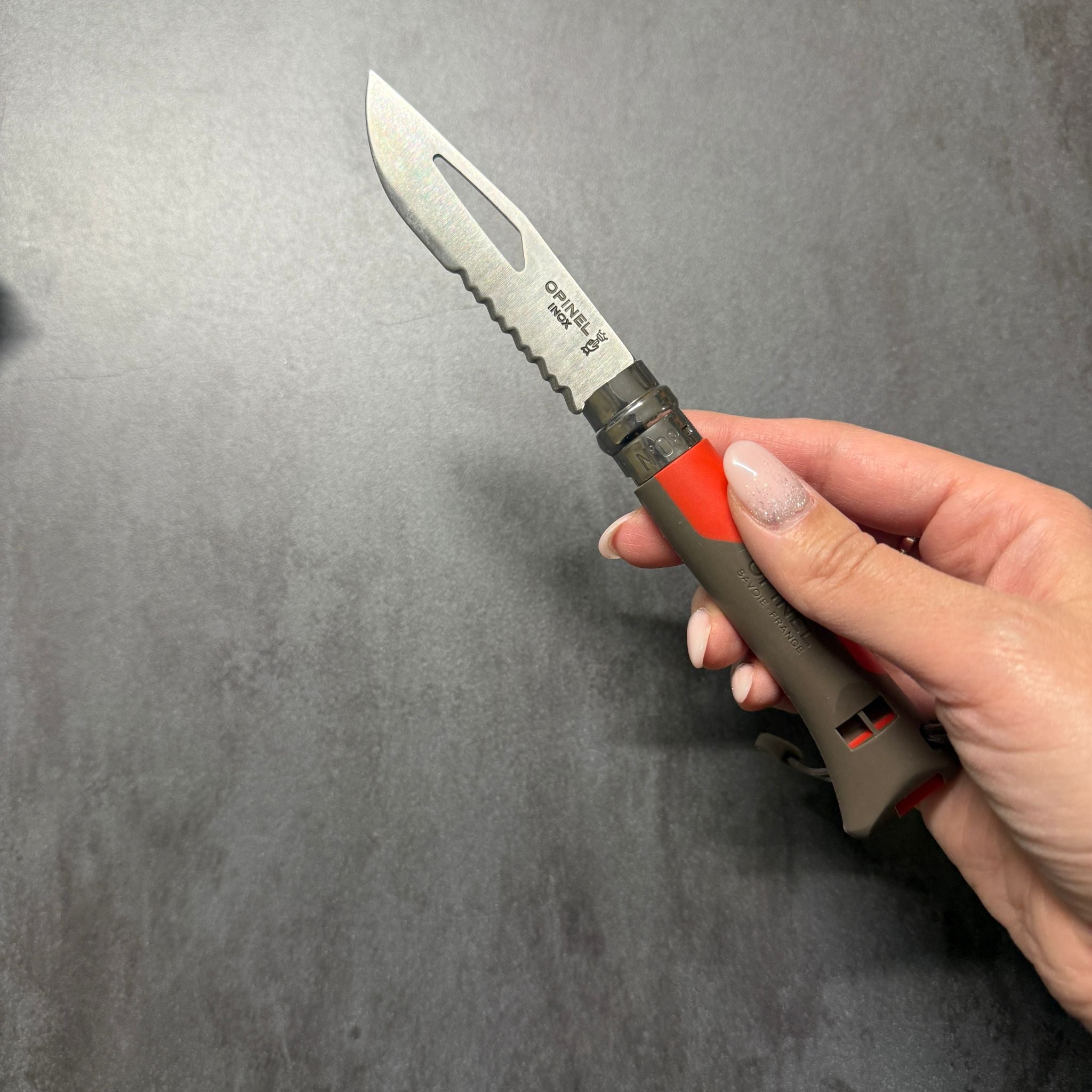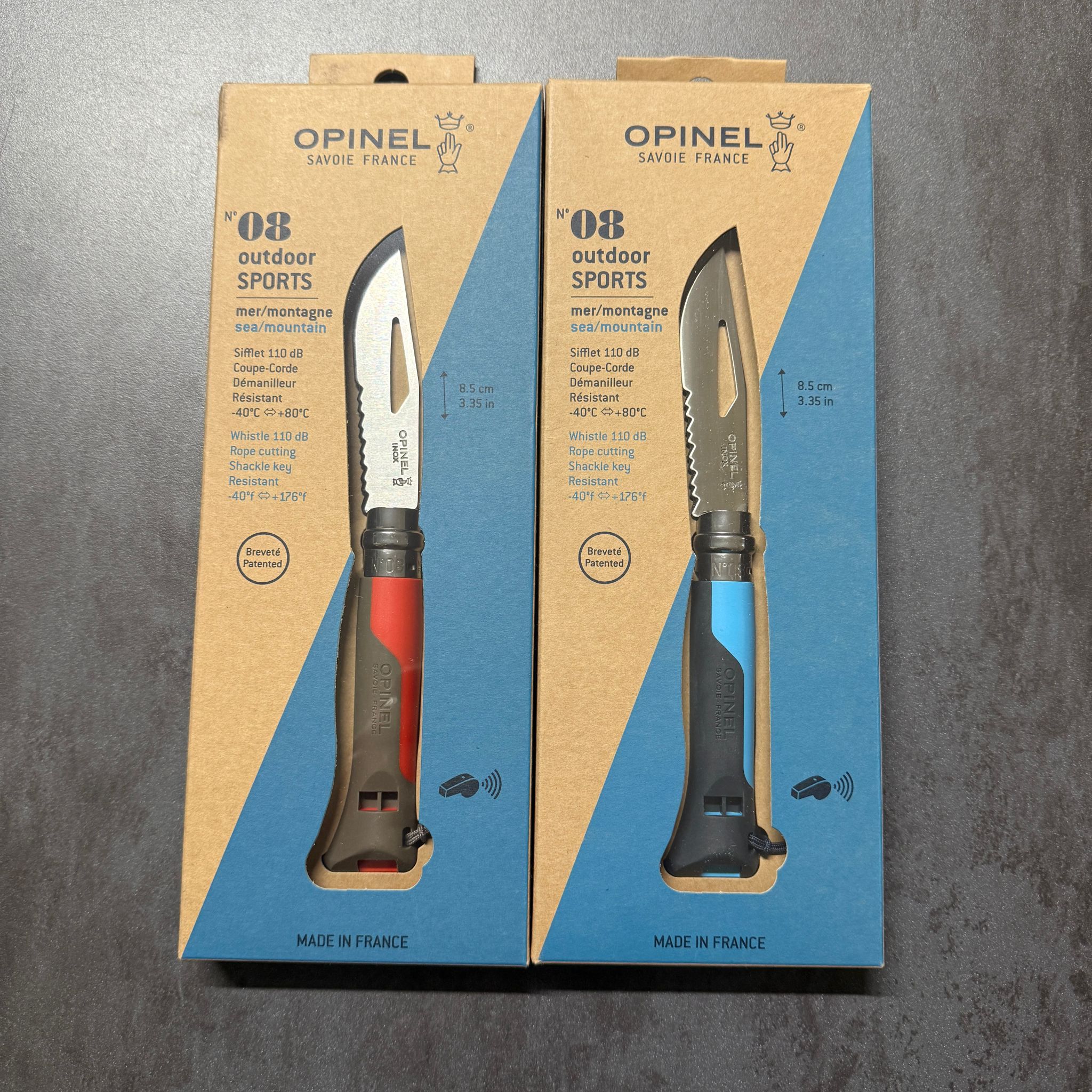COLTELLO - OPINEL N.08 - CON FISCHIETTO - ROSSO e BLU