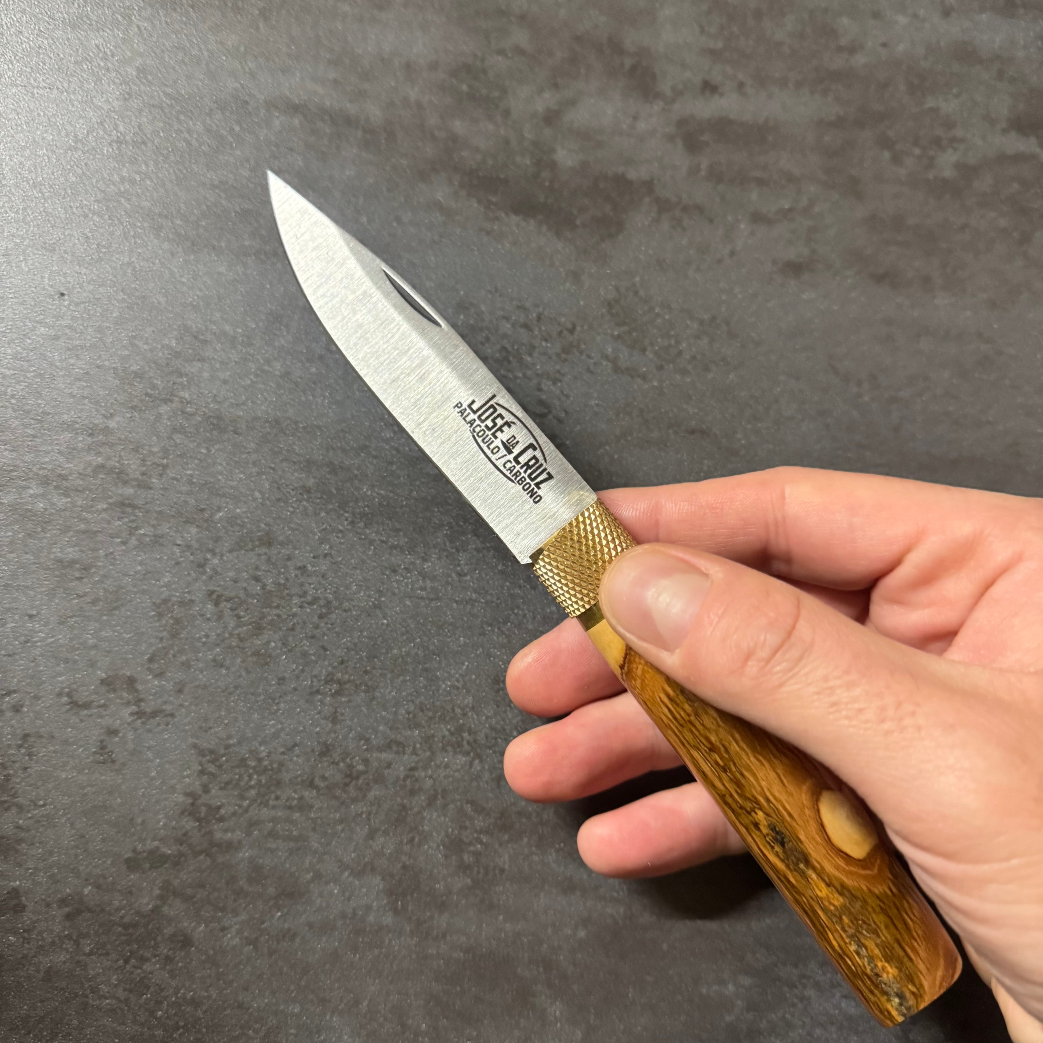 Coltello Portoghese della Famiglia Josè Da Cruz, che porta avanti da generazione la tradizione e passione per questi magnifici coltelli fatti in acciaio carbonio e manici realizzati con materiali pregiati. Famosi per la loro qualità e la fantastica ghiera in ottone che funge da blocco lama.