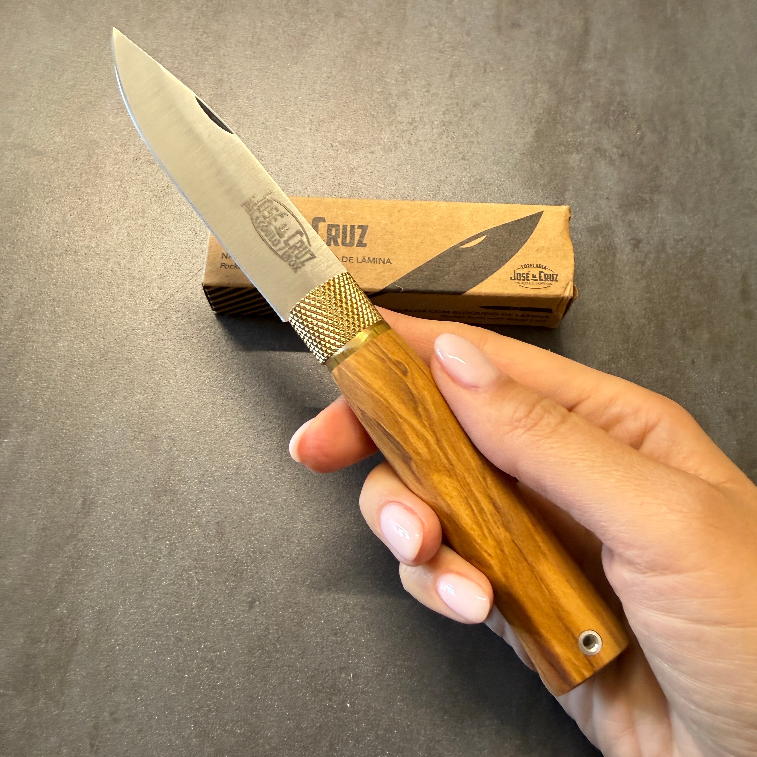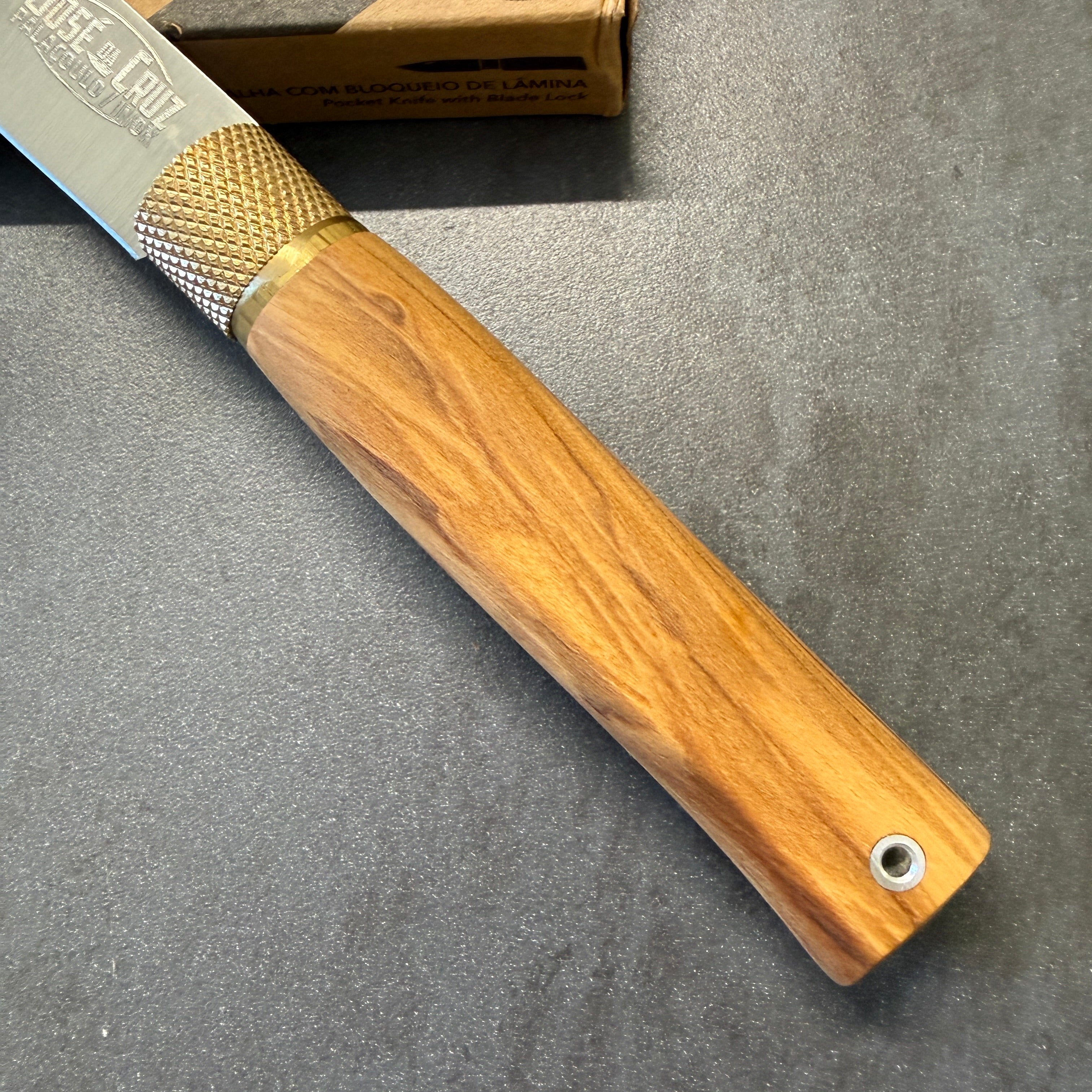 Coltello Portoghese della Famiglia Josè Da Cruz, che porta avanti da generazione la tradizione e passione per questi magnifici coltelli fatti in acciaio inox e manici realizzati con materiali pregiati. Famosi per la loro qualità e la fantastica ghiera in ottone che funge da blocco lama.