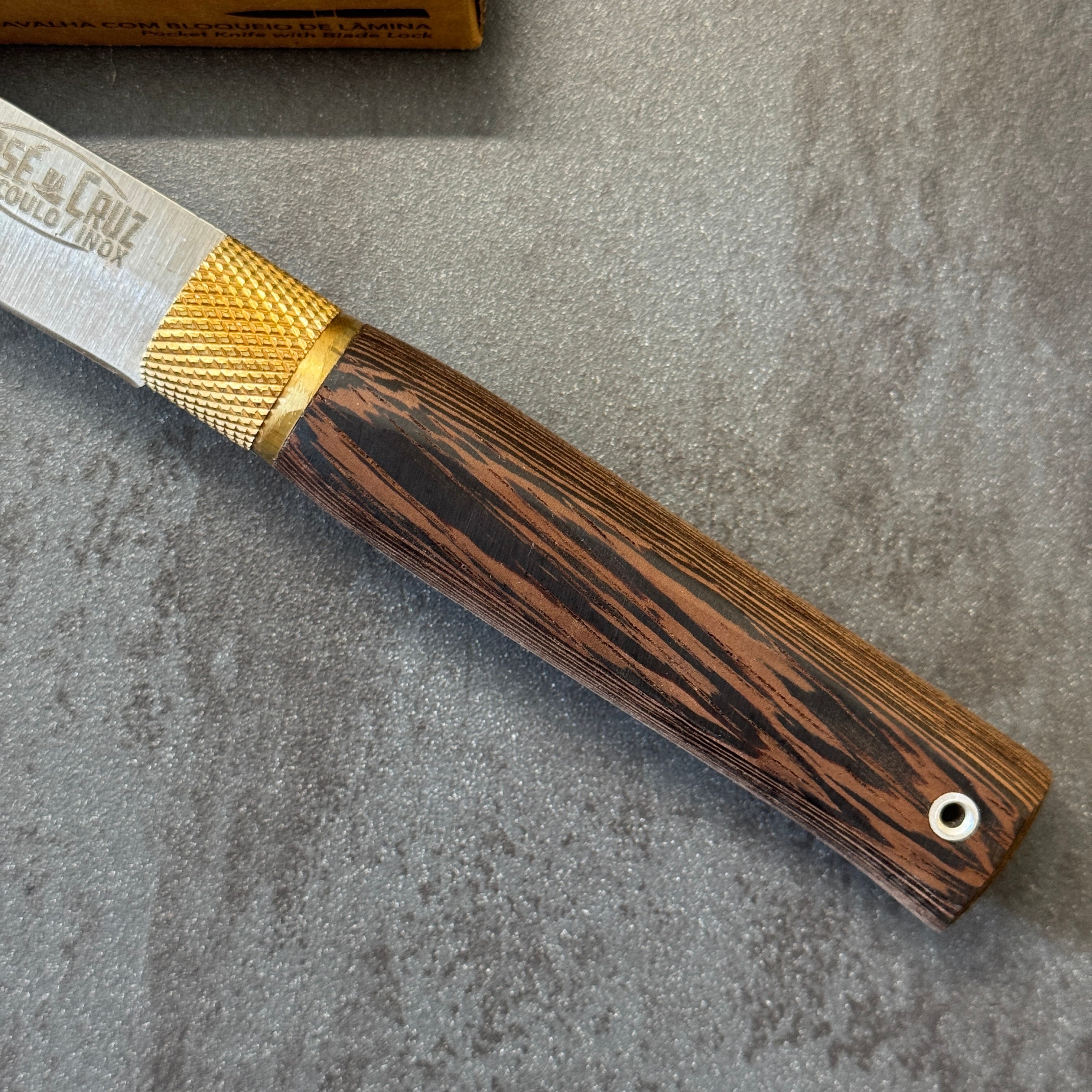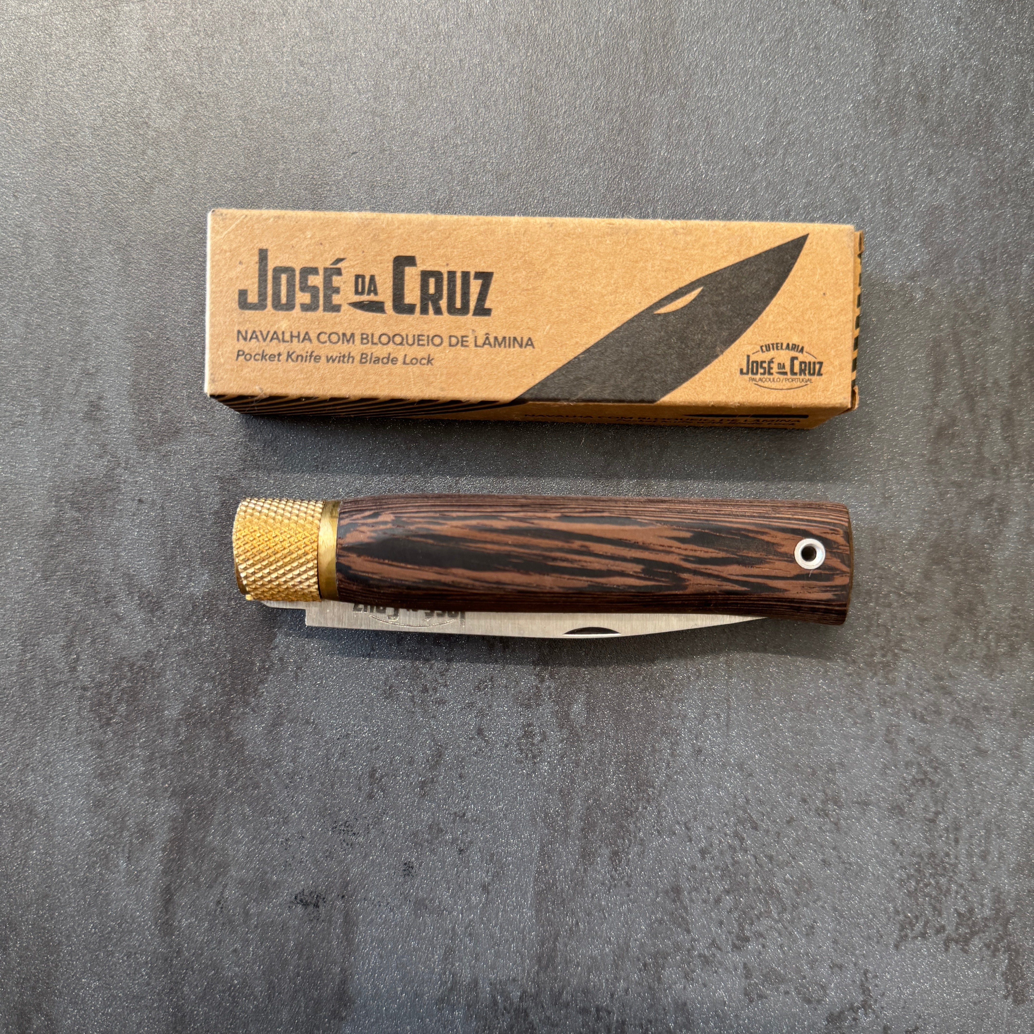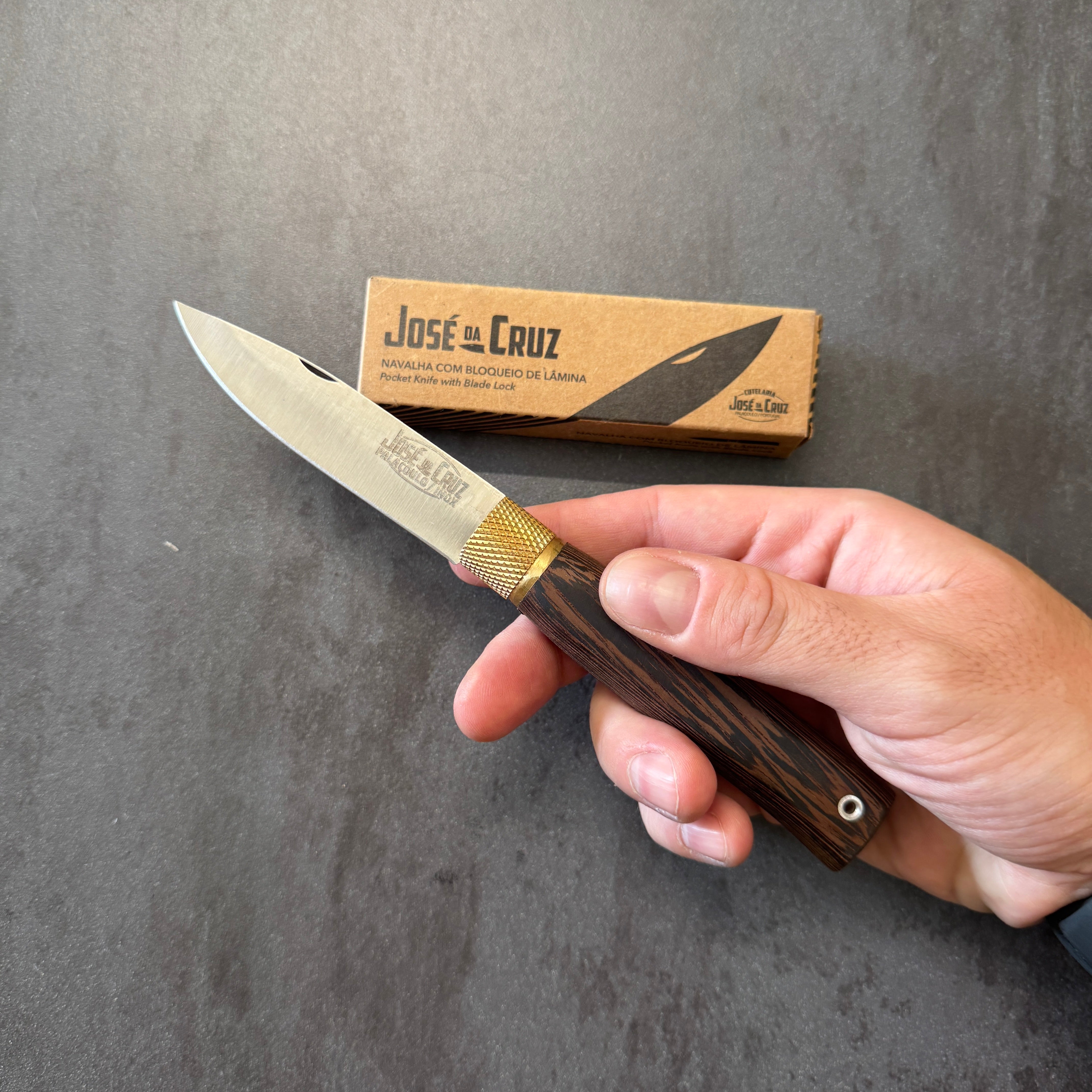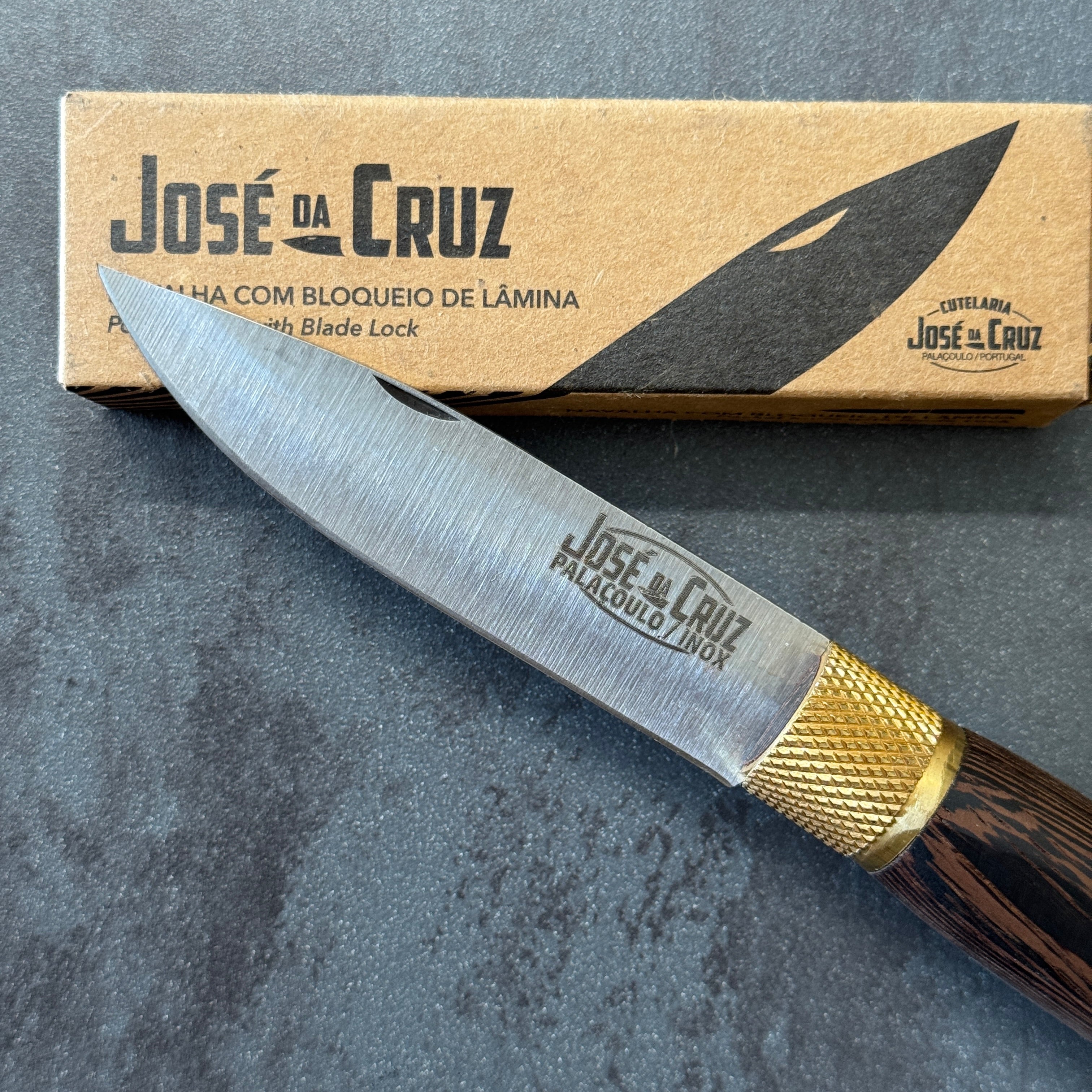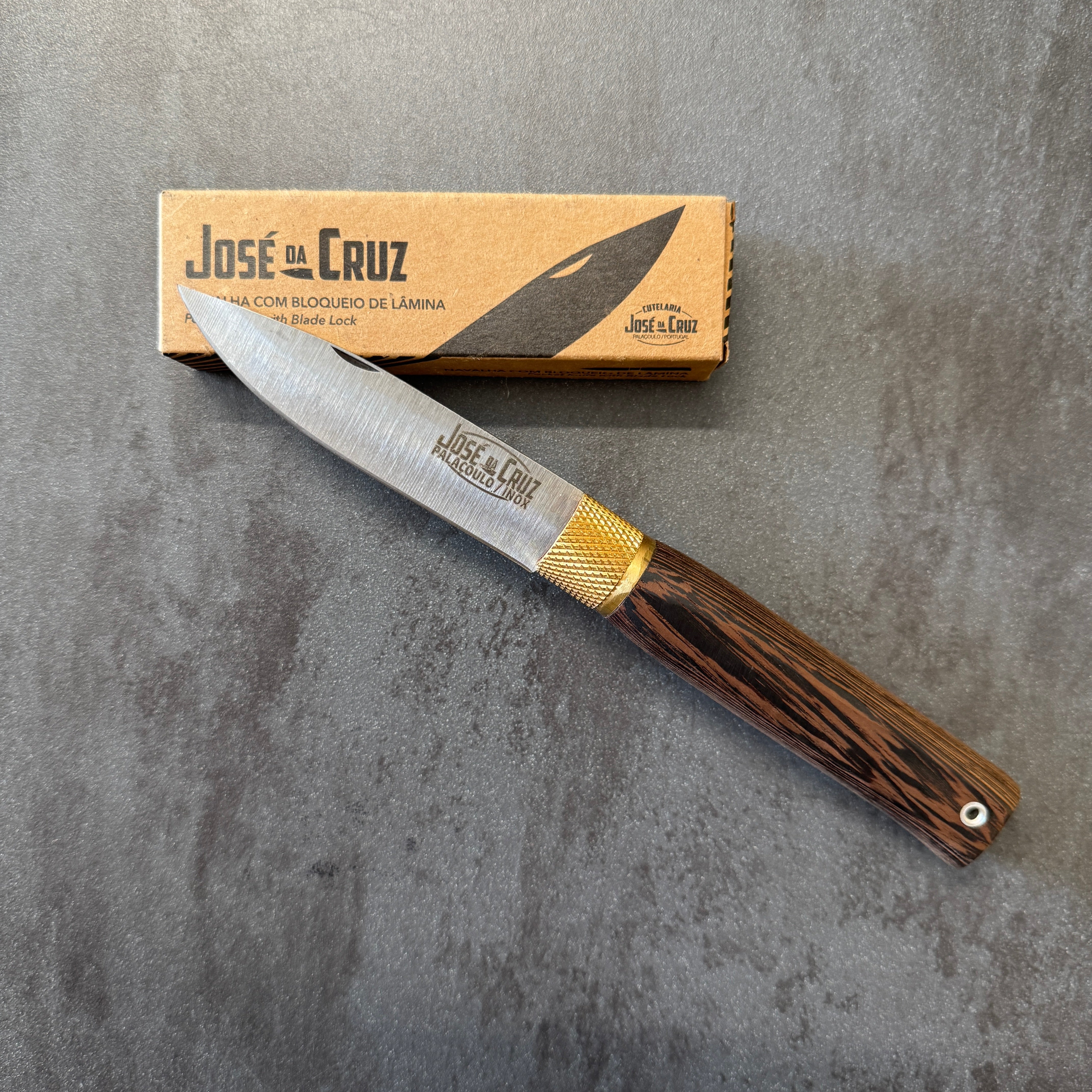 Coltello Portoghese della Famiglia Josè Da Cruz, che porta avanti da generazione la tradizione e passione per questi magnifici coltelli fatti in acciaio inox e manici realizzati con materiali pregiati. Famosi per la loro qualità e la fantastica ghiera in ottone che funge da blocco lama.