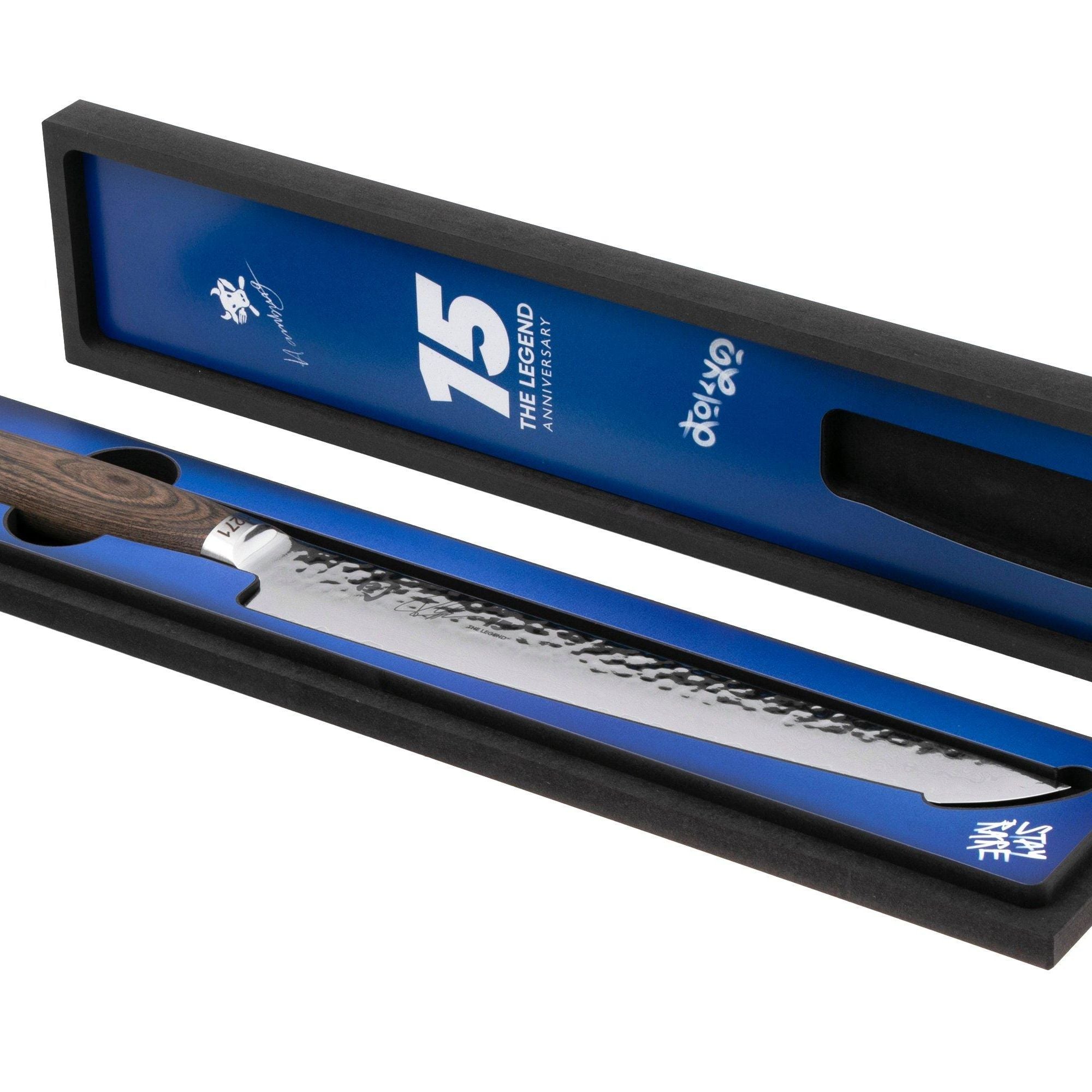 Il tradizionale tantō giapponese (短刀), nella sua forma originale una spada corta, è caratterizzato da un dorso della lama dritto e da un filo altrettanto dritto. La forma della lama ha trovato impiego anche nella cucina moderna, dove viene utilizzata in molti modi: la forma della lama del coltello commemorativo TDM-1785, ad esempio, è perfetta per tagliare verdure (di grandi dimensioni), rifilare pezzi di carne, sfilettare il pesce e molto altro ancora. La lama presenta l'inconfondibile effetto martellato (Tsuchime) della serie Shun Premier Tim Mälzer. Inoltre, l'esclusivo logo “15 The Legend” accanto alla firma di Tim Mälzer impreziosisce la lama Tantō.